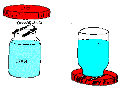 The babies are born with sufficient reserves of nutrients that they do not need to eat or drink for approximately 2-3 days after hatching. Once they are dry and have recovered from the ordeal of hatching though, they should have food and water available at all times. The food dish can be made of almost anything and should be low enough to reach easily. They WILL climb into and over it so it should not tip easily. The waterer must be designed so they cannot climb into it for they will get wet and chilled. They will also make a big mess of the entire cage. Waterers are available at the LILYDALE (CO-OP) HATCHERY and most livestock feed and equipment stores for about $5.00 but it is not difficult to improvise your own. You will need a medium sized jar, a flat-bottomed dish not much larger than the opening of the jar (the lid from a large peanut butter jar works great), and two small pieces of doweling (pencils work just fine). The doweling should be short enough to fit inside the dish rather than across the rim. Fill the jar with luke-warm water (never cold), balance the two pieces of doweling across the mouth of the jar and place the inverted dish on top of that. Then hang on to the dish and the jar together and quickly turn the whole thing upside down. The doweling provides enough space for some water to run into the dish which will be automatically replaced as the ducklings drink it. There should be enough space around the edge of the dish for the ducklings to dunk their bills (and possibly heads) in the water without being able to actually climb in. We also have watering bases that can be screwed onto jars available for sale. Sorry, but we cannot loan them (we have had too many that were not returned).