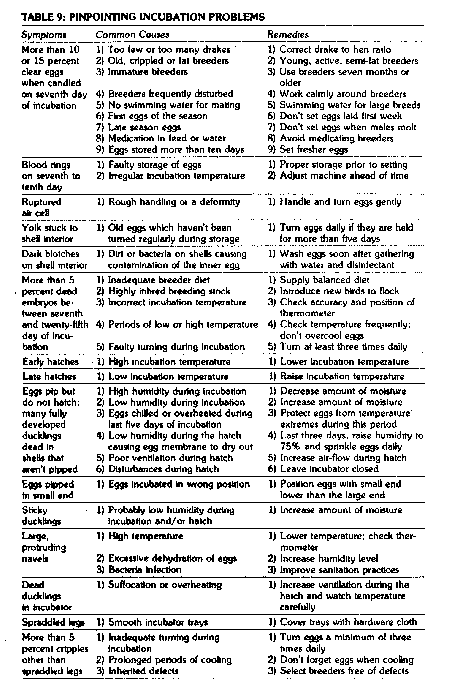 - Incubation Problems Chart