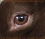 Color is to be a rich chocolate brown, running as deep towards the skin as possible. Color is to be even throughout. Undercolor is to be dove. Ruby cast over eyes permissible.